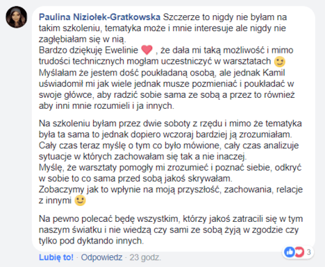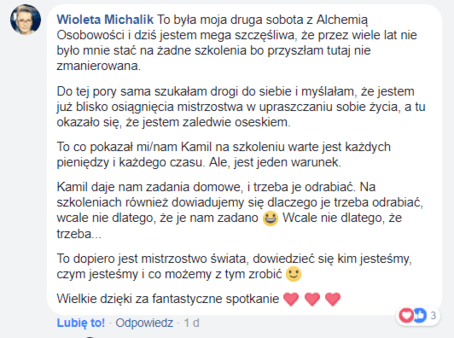 ZOBACZ OPINIE UCZESTNIKÓW NA TEMAT WARSZTATU ALCHEMIA OSOBOWOŚCI