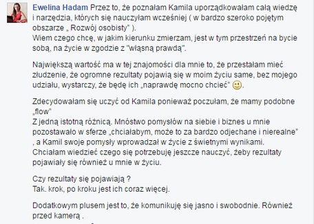 "Przez ostatnie 5 lat studiowałem różne metody rozwoju osobowości, pracy z podświadomością i emocjami aby dokonywać skutecznej transformacji charakteru, rozwijać potrzebne cechy i rozwinąć umiejętność radzenia sobie z kryzysami, dzięki którym człowiek odkrywa swoje najgłębsze wartości