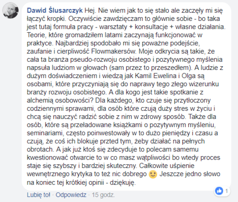 ZOBACZ OPINIE UCZESTNIKÓW,NA TEMAT WARSZTATU ALCHEMIA OSOBOWOŚCI